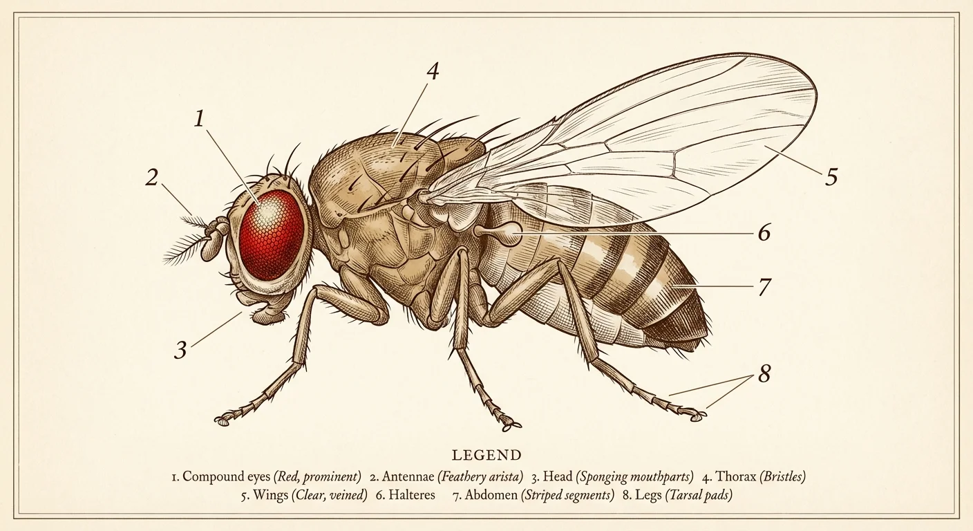 Complete lifecycle from egg to adult takes only 8-10 days at room temperature—among the fastest breeding insects. Females lay up to 500 eggs at a time near fermenting organic matter. Eggs hatch in 24-30 hours into tiny larvae that feed for 5-6 days before pupating. This rapid reproduction allows populations to explode in days.